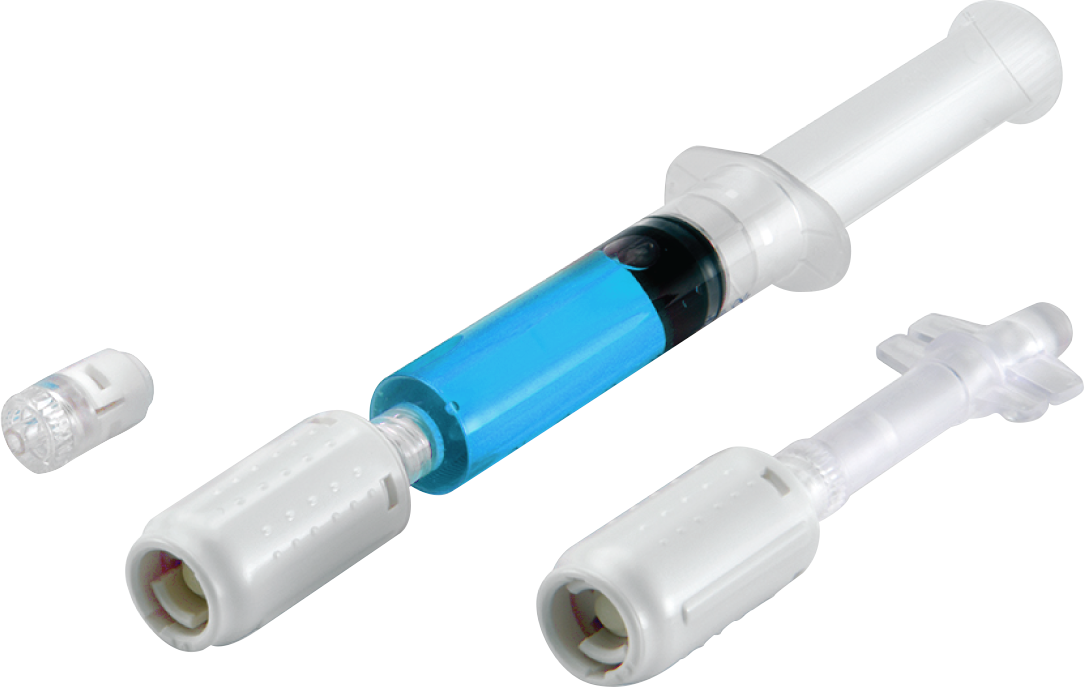 Trockene Verbindung verhindert mikrobiellen Eintritt und Anwenderexposition Für bis zu 40 Anwendungen zertifiziert • Eingebettete Stahlkanüle