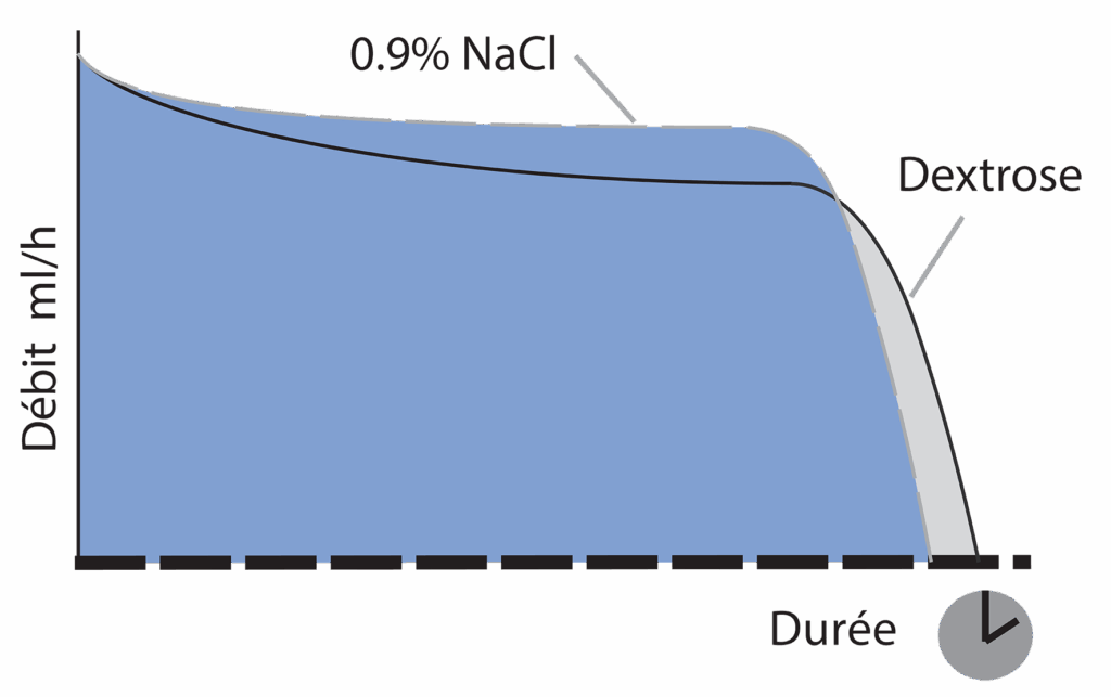 Die Fördermengen der elastomeren Pumpe wurden mit einer 0,9%igen Na-Chlorid-Lösung berechnet. Die Verwendung von Glukose oder anderen viskoseren Lösungen als die Na-Chlorid-Lösung erhöht die Dauer der Infusion um 10% oder mehr..