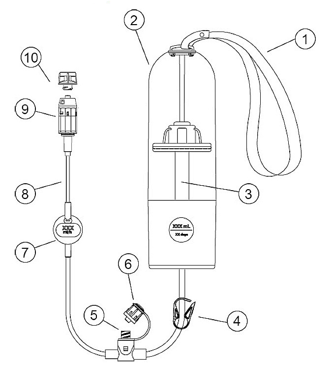 Die Pumpe ist so konzipiert, dass sie ungewöhnlichen äußeren Belastungen standhält, die zu Hause oder auf der ambulanten Station auftreten könnten (z.B. ein Patient, der auf seiner Elastomeren Pumpe sitzt oder einschläft oder andere Ursachen wie versehentliches Strecken des Schlauches usw.).