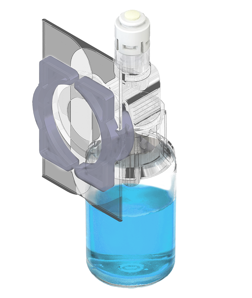Der ToxiSeal™ Vial-Adapter stellt beim Anschluss an ein Fläschchen einen Druckausgleich sicher.